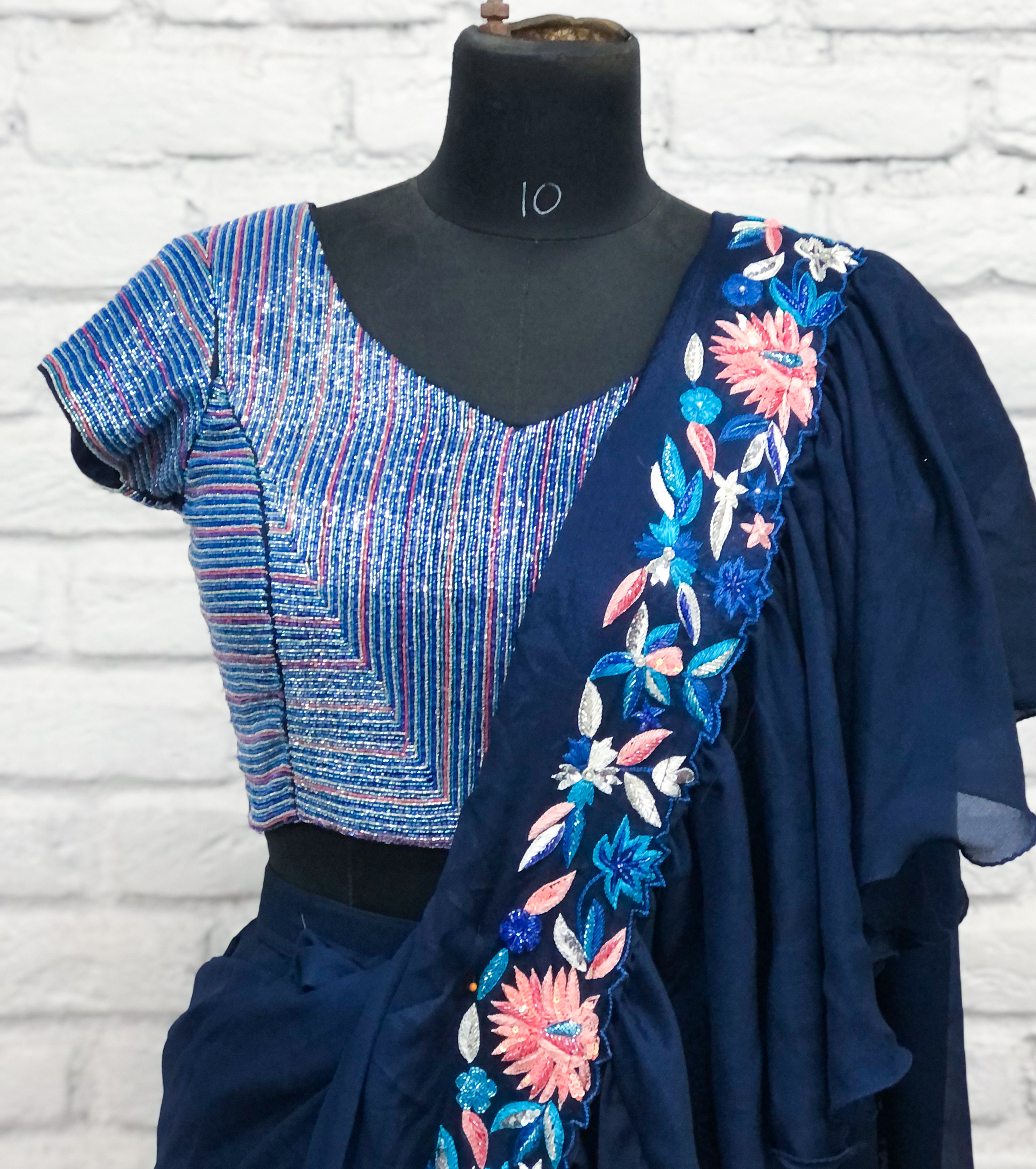 Navy Blue Ruffle Saree Gown