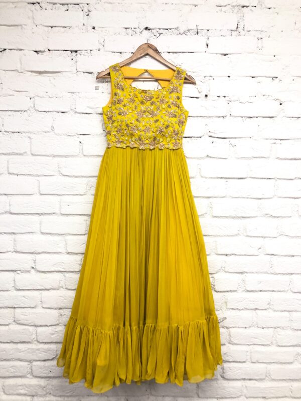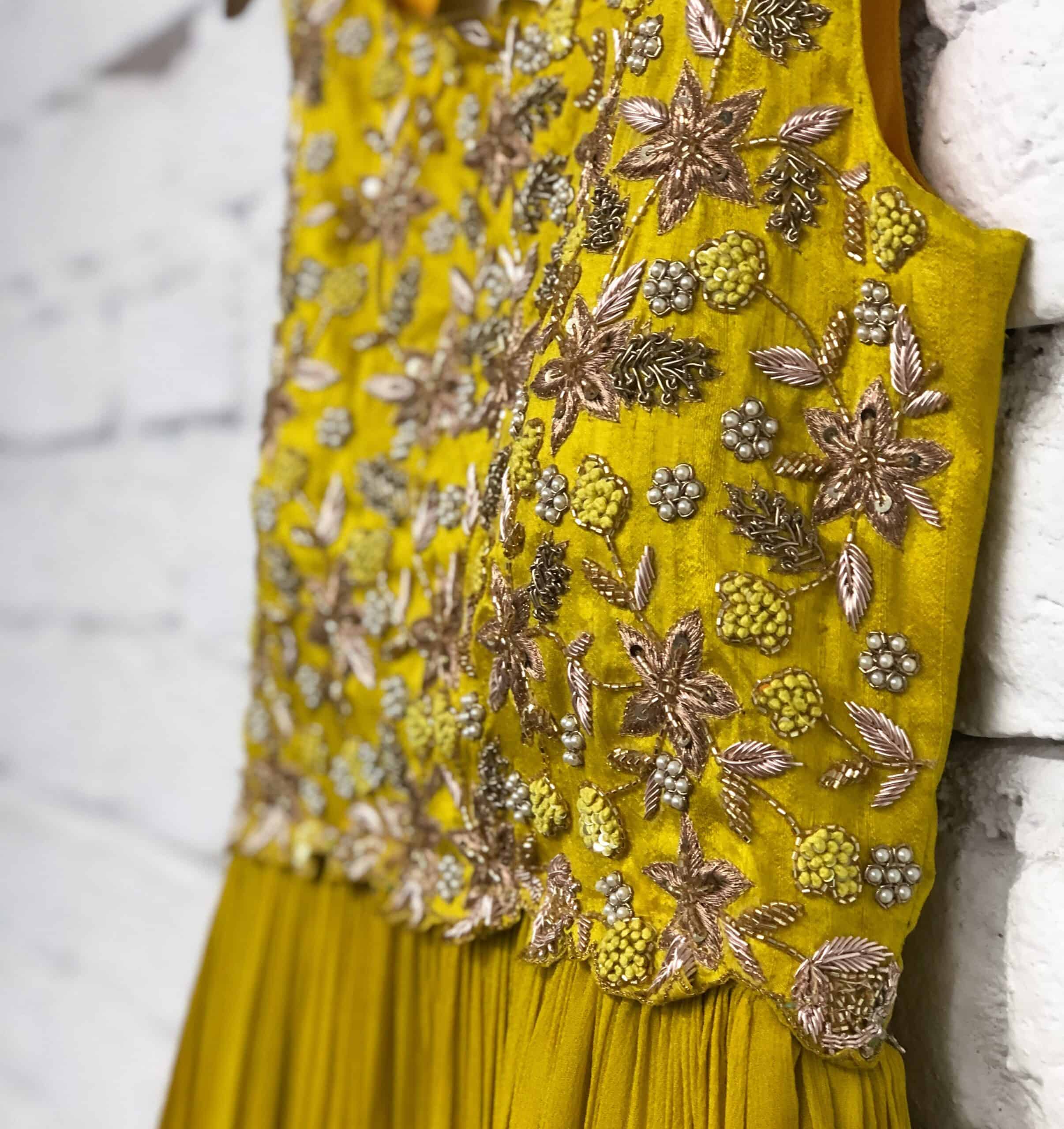 Hand embroidered bodice with gorgette ruffled flare(Can be customized as per your requirement.)