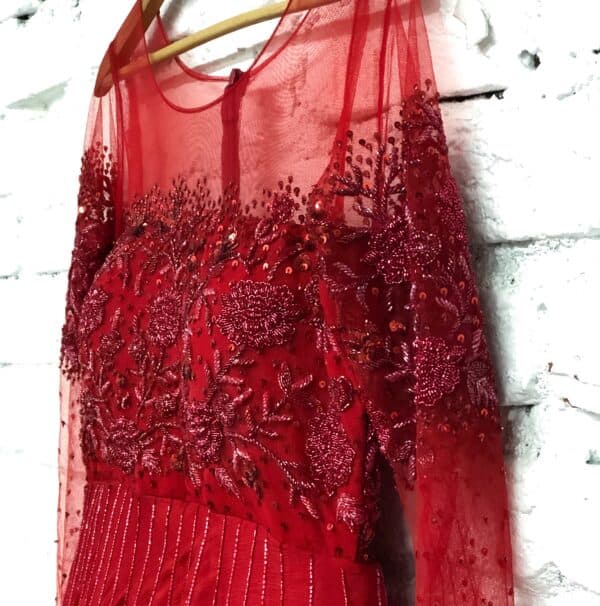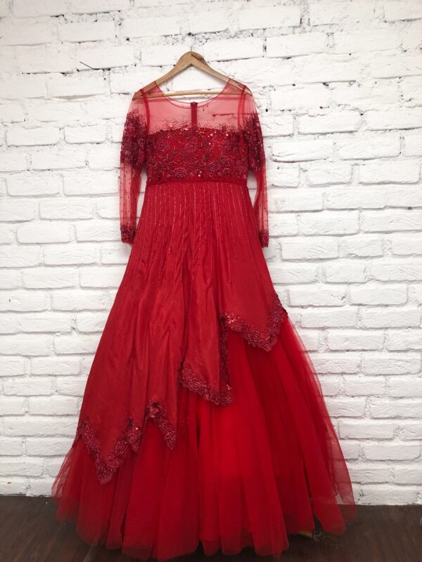 Lovely red gown with beads embllishments all-over (Can be customized as per your requirement.)